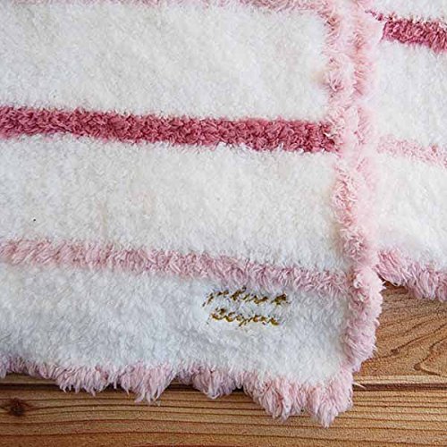 モコモコとした縁のスカラップと、2カラーのボーダーが可愛いブランケット。