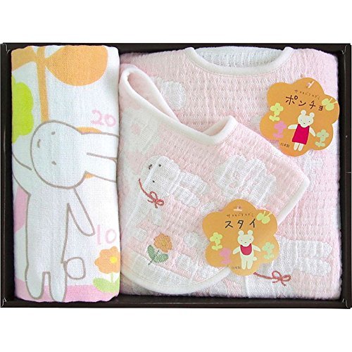 ■商品内容:セット内容/ポンチョ(32×27cm)・スタイ(27×25cm)・フェイスタオル(34×80cm)×各1 材質/ポンチョ・スタイ:綿79%・ポリエステル20%・ポリウレタン1%、フェイスタオル:綿100% 箱サイズ/24.2×34.7×5.1cm 原産国/日本