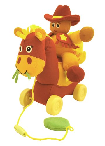 Features like feel the crinkle in my vest, gentle rattle in my hat, feel my soft fringe, hands and feet are sized just right for little hands to grab;Sensory experiences like socio emotional, gross motor, auditory and tactile;Machine washable;Attaches to Giddy Up's saddle;Duke The Cowboy is a plush go anywhere attachable to anything