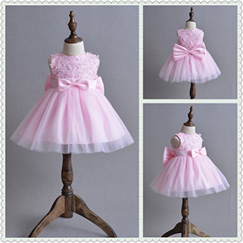 giminuoベビー ドレス 結婚式 フォーマル 女の子 ワンピース ヘアバンド 付き 赤ちゃん お宮参り 出産祝い (24,18-30ヶ月, ピンク)