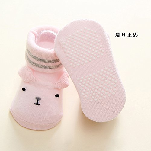 giminuoベビー 靴下 滑り止め 歩き学び 新生児 可愛い 出産祝い 靴下 3足セット 綿 夏 (M,6-24ヶ月, ピンク)