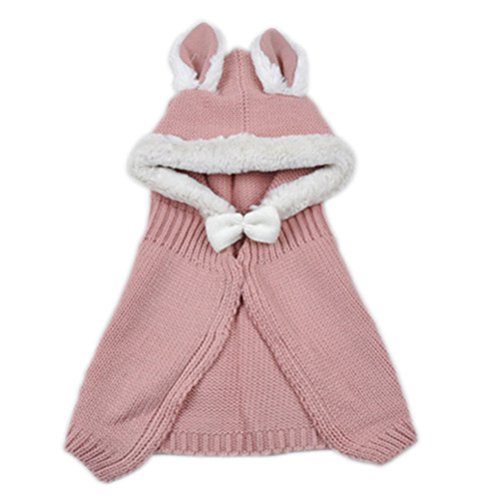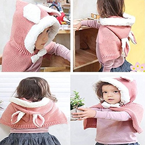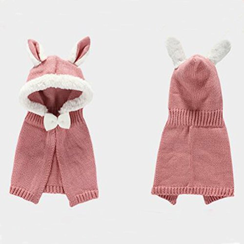 giminuoキッズ ニット帽子 ケープ ポンチョ ベビー帽子 赤ずきんちゃん クリスマス ネックウォーマー 防寒 秋冬 保温 (ピンク)