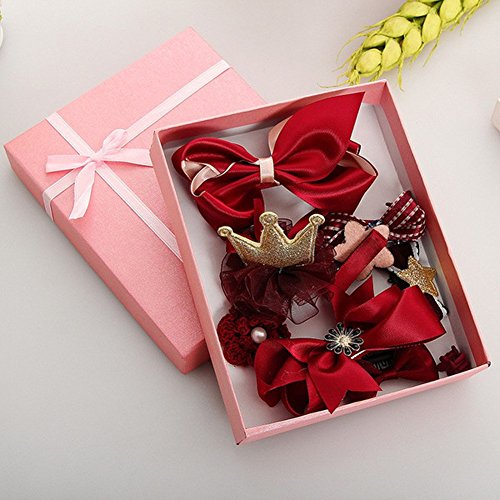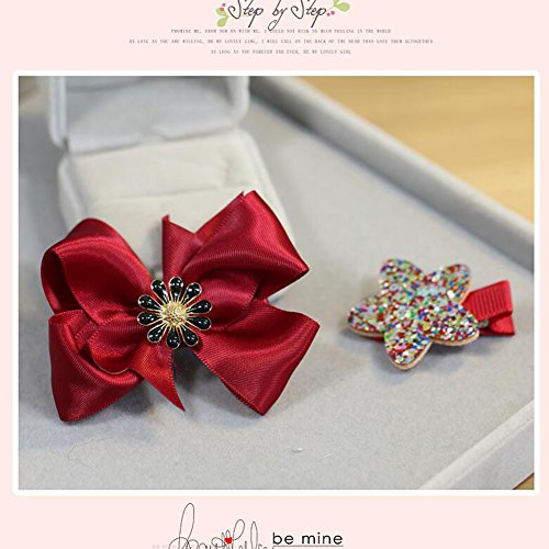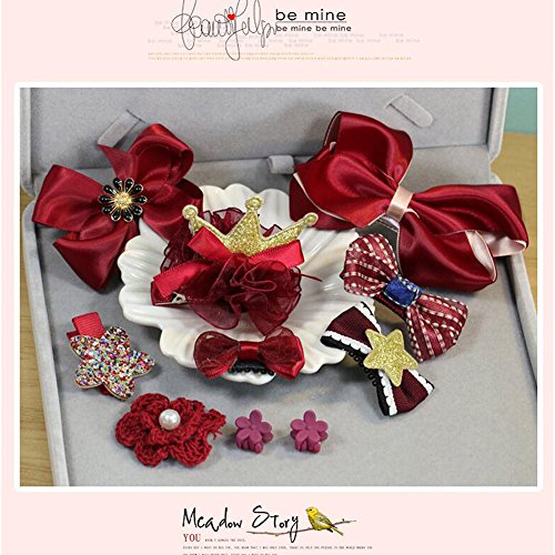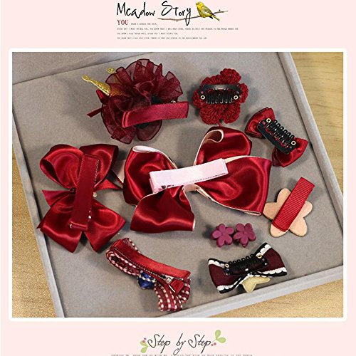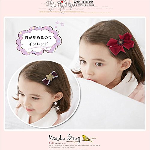 giminuoベビー かわいい リボン ヘアピン ヘアクリップ キッズ 髪飾り 収納ケース付き (ワインレッド)