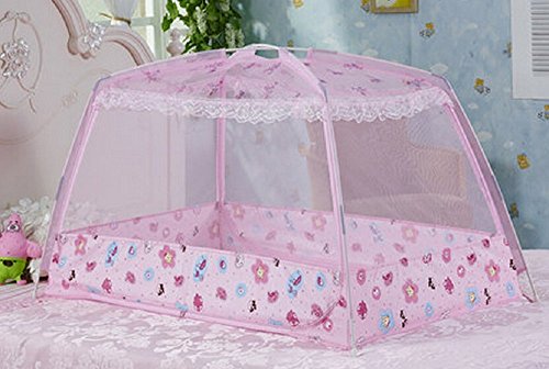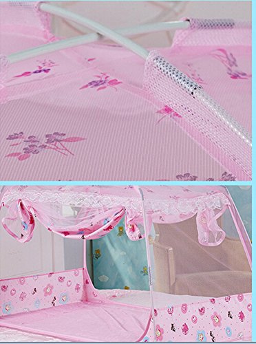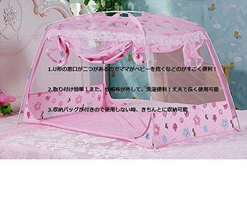 global i mall 可愛い レース飾り 取り付け簡単 ベビー蚊帳 折畳み 赤ちゃん用 高品質 固定性がよい ピンク