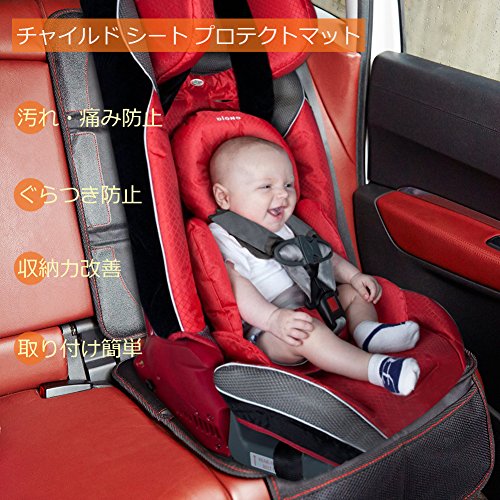 - 【座席を守る】 チャイルドシートを長期間使用による愛車の座席のヘタレ、キズ、擦れを防ぎます。なお、お子様の食べかすや飲みこぼし、靴の汚れも防止できます。お手入れも簡単で、汚れが布巾でさっと拭き取れて清潔になります。