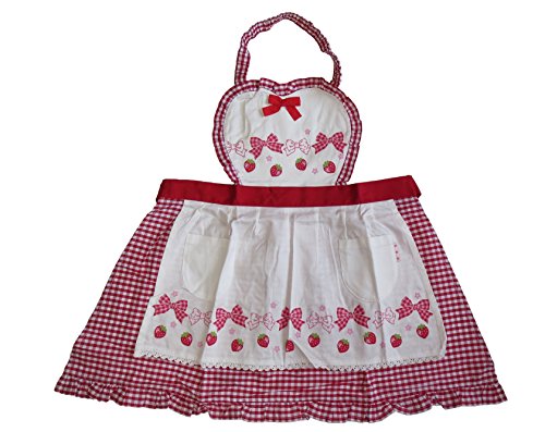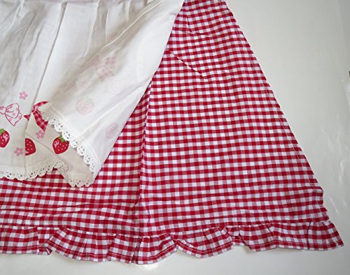こども エプロン 女の子 フリル 苺 リボン ギンガムチェック 130㎝ レッド 赤