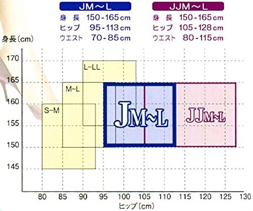 - JJM〜L : ヒップ105〜128cm、ウエスト 80〜115cm 身長:150〜165cm