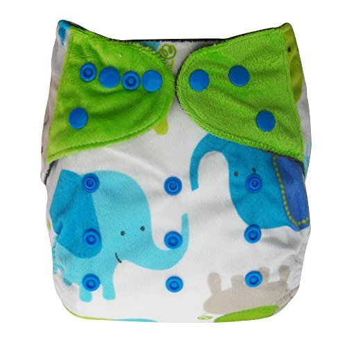 - Minky Charcoal Bamboo AIO All-in-one Cloth Diaper with Pocket, Elephant