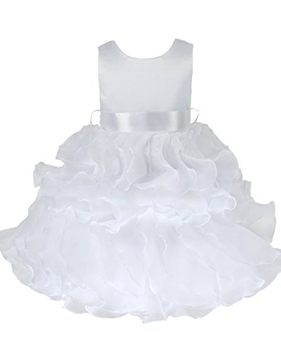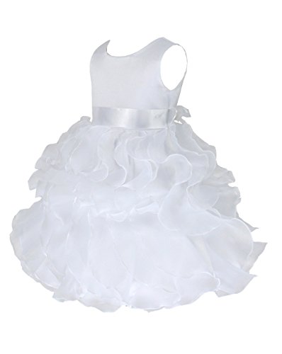 絹織物とオーガンザ、子供ドレス、セレモニー、洗礼式、ベビードレス、サイズ S/M/L/XL (90cm, ホワイト) W232b-XL#