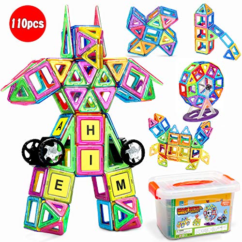 GOGOWIN マグネットおもちゃ 知育玩具 マグネットブロック DIY 磁石積み木 子供誕生日 出産祝い ギフト 入園 プレゼント 収納ケース付き 110ピース