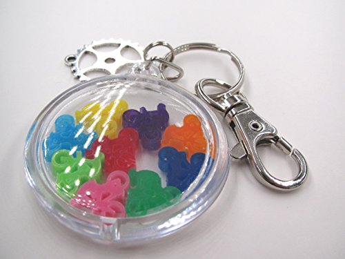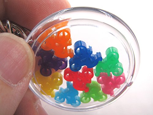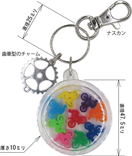 ・アクリル製キーホルダーの中に9色のミニ自転車が入っています。 ・自転車の大きさは : 幅12ミリ 高さ11.5ミリ 厚み3ミリ。アクリルカット品。 →キーホルダ内の隙間の中でガチャガチャ動きます。隙間とほぼ同じなのでひっくり返ることはありません。 ・青/黄/黄緑/紫/赤/オレンジ/紺/緑/ピンク 9種類 ・キーホルダー大きさ : 直径48ミリ、厚さ10ミリ、Oリング外径25ミリ、重さ約20グラム。歯車型のチャーム、ナスカン付き。 ・微妙なスリ傷等あり得ますが、外観上問題のある物(例えば傷が深い等)はこちらの判断で入らないようにいたします。