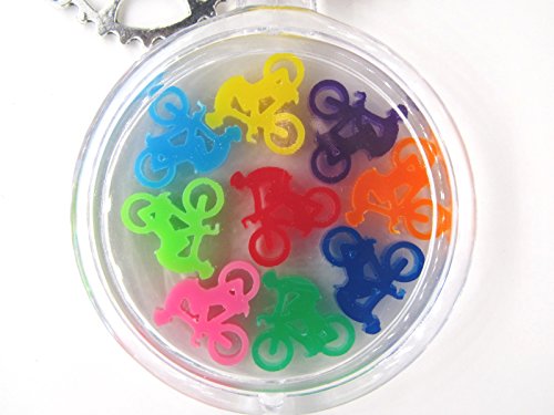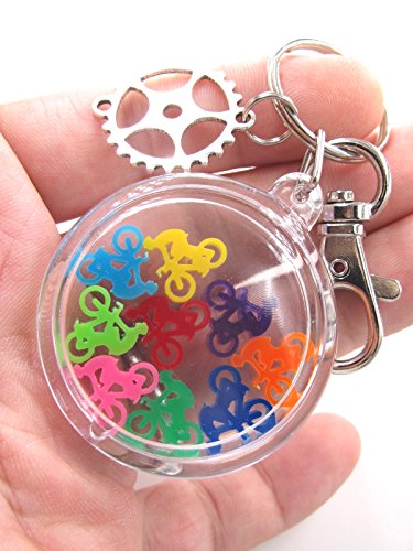 - アクリル製キーホルダーの中に9色のミニ自転車が入っています。