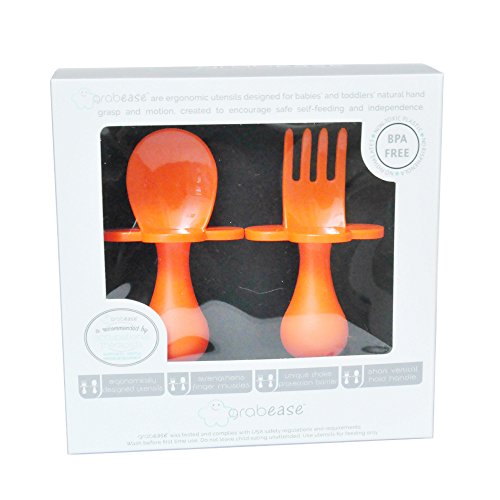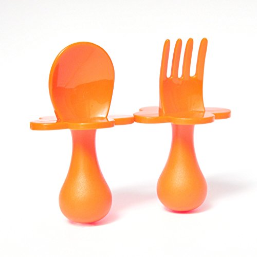 メーカー:grabease サイズ:4.5W×7H cm / BOX 11.5L×4W×11.5H cm 対象年齢:6カ月頃から 安全基準: 消費者製品安全性改善法適合(CPSIA) 米国安全基準適合(ASTM) 幼児が一人で食べる練習をするために安全なスプーンとフォークのセットです。 人間工学に基づき、握りやすい設計のハンドル。 手づかみをする様に垂直に食べものを口に運ぶ事ができます。 口内の安全設計でチョークガードがついています。