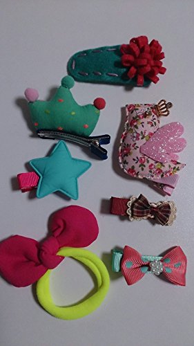 - ヘアクリップ6個 (鳥1個、リボン2個、星1個、王冠1個 花1個) ヘアゴム1個