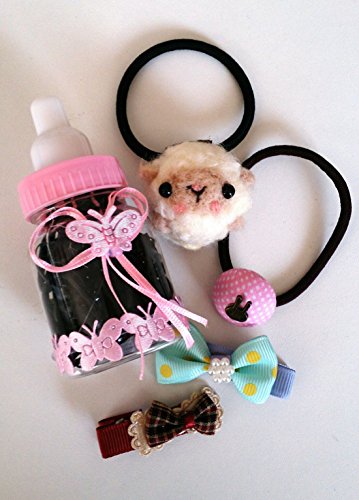 - ヘアクリップ2個 (リボン2個) ヘアゴム2個 哺乳瓶ケース入りゴム1個