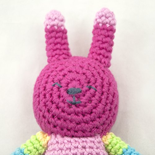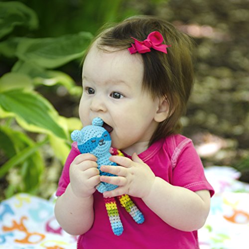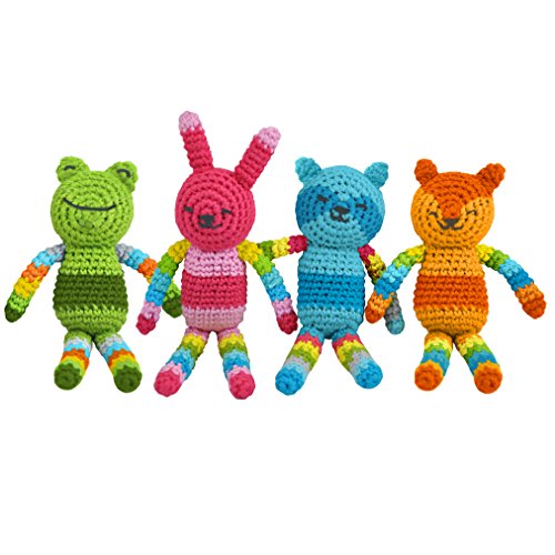 Rattle is easy for little ones to grasp and helps develop motor skills;Rattle inside and hand-crocheted texture encourages sensory development;Crocheted organic cotton with organic cotton fill;Crocheted from organic cotton made colorful with low-impact azo-free dyes;Hand wash in cold water and air dry;Stimulates sensory and interactive play