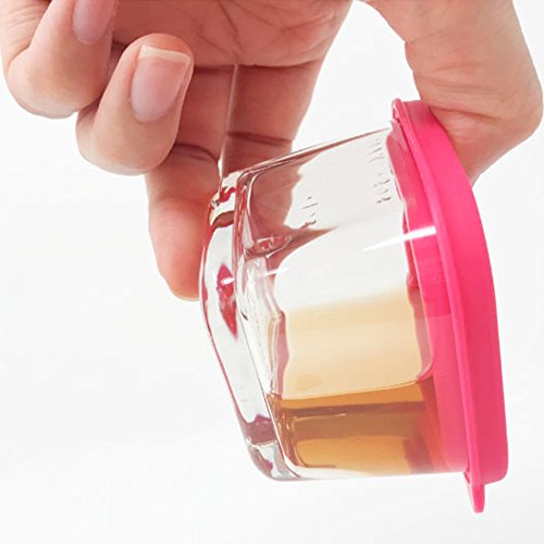 - ベビーフードの保存や持ち運びに便利なフードコンテナ。厚みのある耐熱・強化ガラス製で、熱や衝撃に強く、割れにくい。