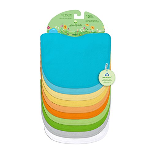 グリーンスプラウツ green sprouts スタイ よだれかけ 防水 オーガニックコットン マジックテープ ドライビブ stay-dry bibs 10枚セット 3-12ヶ月 Aqua set