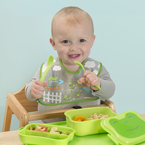 Waterproof protection for messy eaters;Wide-coverage protection for baby's clothes;Durable material made from safer plastic;Adjustable hook-&-loop closure for easy on & off