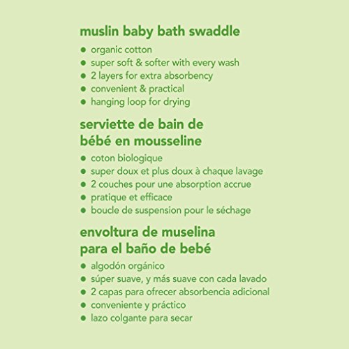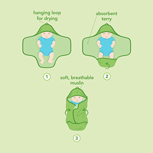 Snuggles, dries and keeps baby warm;100% organic cotton muslin and knitted terry;Convenient and practical;2 layers for extra absorbency that are super soft and softer with every wash;Hanging loop for drying;100% organic cotton muslin & knitted terry
