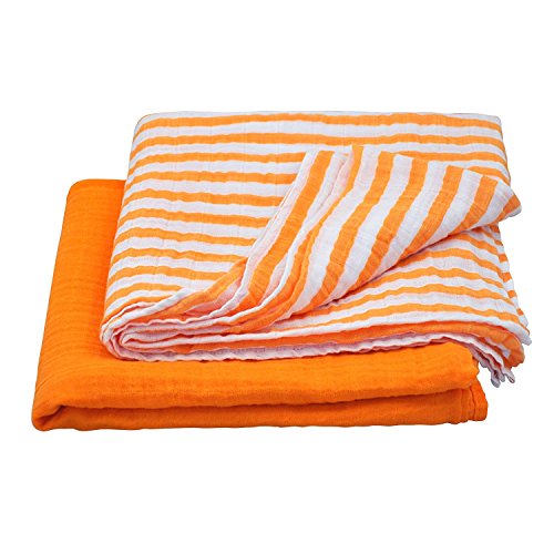 Color:Orange Set green sprouts Muslin Swaddle Blankets made from Organic Cotton feels soft on baby's delicate, sensitive skin. with every wash, it gets softer and softer to keep baby cozy while sleeping. The Organic Cotton is free of toxic synthetic chemicals, and the colors are created with azo-free dyes. Parents will love the Muslin Swaddle Blanket made from Organic Cotton because it can be used as a protective layer on many surfaces, and is machine-washable.
