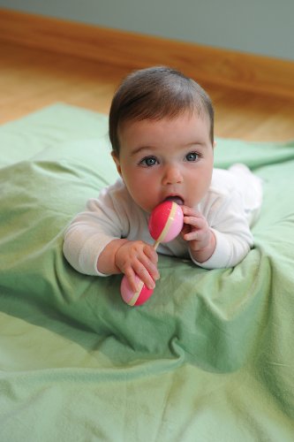 iPlay Inc., Green Sprouts, Cornstarch Dumbbell Rattle, 3 + Months, Aqua Color