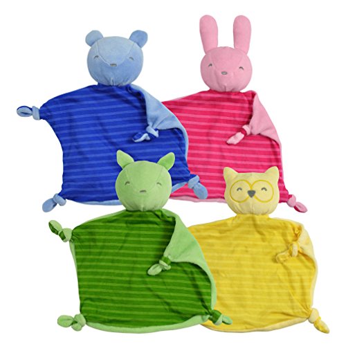 Soft and cuddly blankie animal comforts baby;Organic velour backing and striped, organic jersey front provide texture variety for baby's senses;Knotted corners offer additional teething option