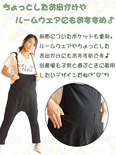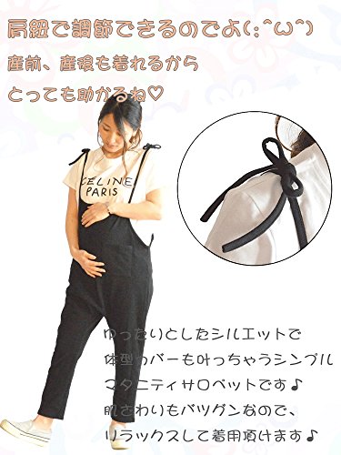 greenleafbaby(グリーンリーフベイビー) マタニティ サロペット オーバーオール 妊婦 オールインワン リラックス ルームウェア (M, 黒+Tshセット)