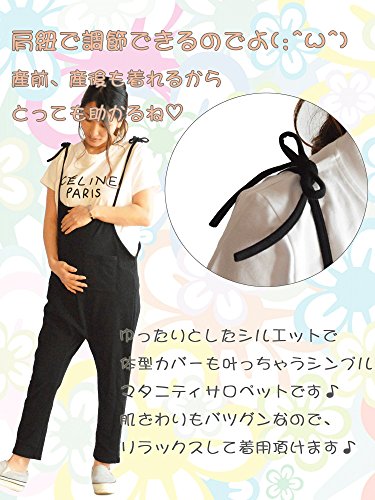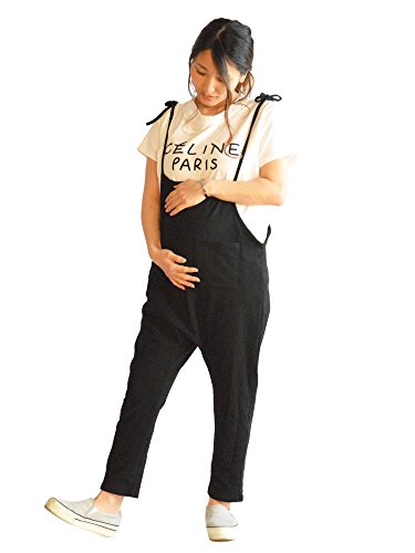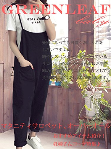 greenleafbaby(グリーンリーフベイビー) マタニティ サロペット オーバーオール 妊婦 オールインワン リラックス ルームウェア (XL, 黒)