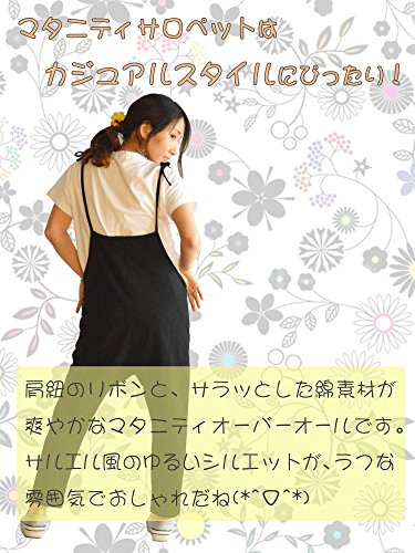 - 肩紐のリボンと肌触りのいいサラッとした綿素材が爽やかなマタニティオーバーオール。サルエルtypeのゆるいシルエットがラフな雰囲気でおしゃれを演出します。