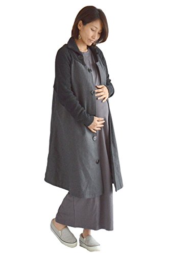 greenleafbaby マタニティ コート Aライン 妊婦服 ニット リブ 体型カバー 産前 産後 (L, グレー)