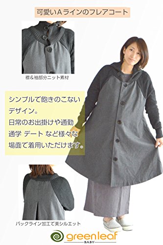 greenleafbaby レディースコート Aライン フレアコート スプリングコート ニット切替 ハイネック 襟袖ボタン付き (M, グレー)