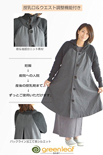 - 襟、肩、腕の部分はニット素材、本体はメルトン風のフェルト素材で作られた暖かいワンピース風Aラインコートです。大人かわいい雰囲気で妊婦さんの気になるお腹周りもカバーします。
