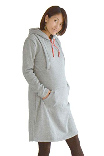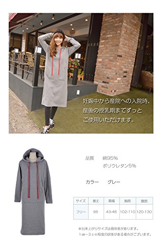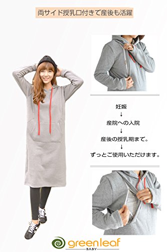 greenleafbaby マタニティ ワンピース 授乳口 裏起毛 産前産後 妊婦用 厚手 (グレー)