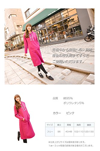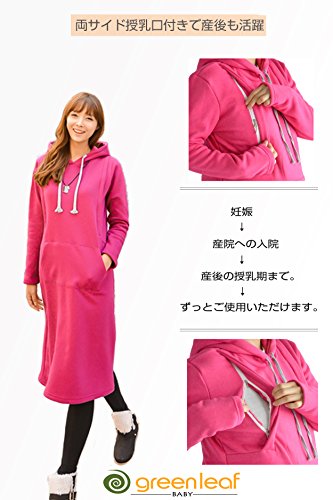 greenleafbaby マタニティ ワンピース 授乳口 裏起毛 産前産後 妊婦用 厚手 (ピンク)