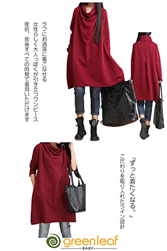 greenleafbaby マタニティ ワンピース 厚手 プルオーバー チュニック ゆったり スタイル レディース (M, ワインレッド)