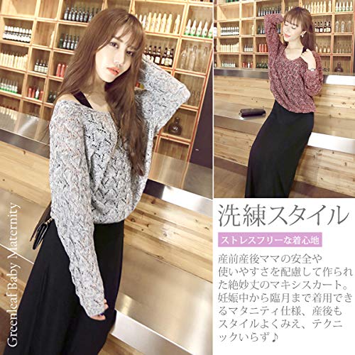 - 産前産後ママの安全や使いやすさを配慮して作られた絶妙丈のマキシスカート。妊娠中から臨月まで着用できるマタニティ仕様、産後もスタイルよくみえ、テクニックいらず♪