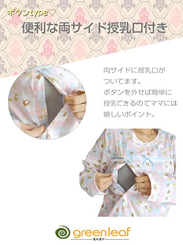 greenleafbaby(グリーンリーフベイビー)マタニティ パジャマ 授乳口付き ルームウェア 前開き 産前産後 (M, ピンク)