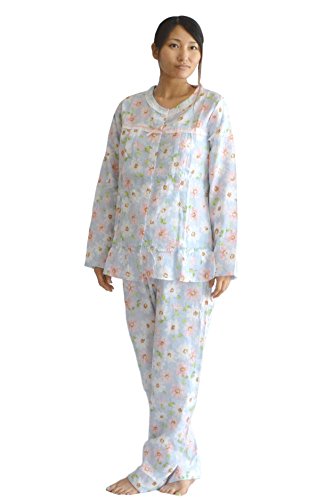 greenleafbaby(グリーンリーフベイビー)マタニティ パジャマ 授乳口付き ルームウェア 前開き 産前産後 (L, ブルー)