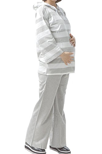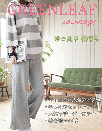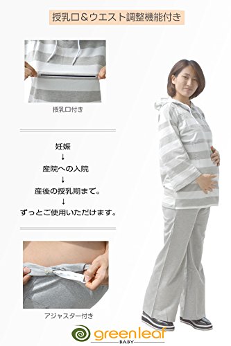 greenleafbaby マタニティ 授乳服 ルームウェア パジャマ 授乳口 ウエスト調整 (M, グレー)