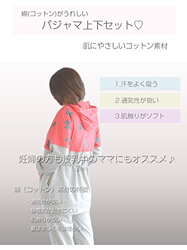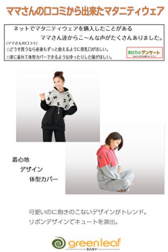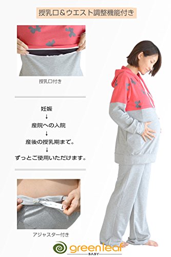 greenleafbaby マタニティ 授乳服 ルームウェア パジャマ 授乳口 スウェット ウエスト調整 (L, ピンク)
