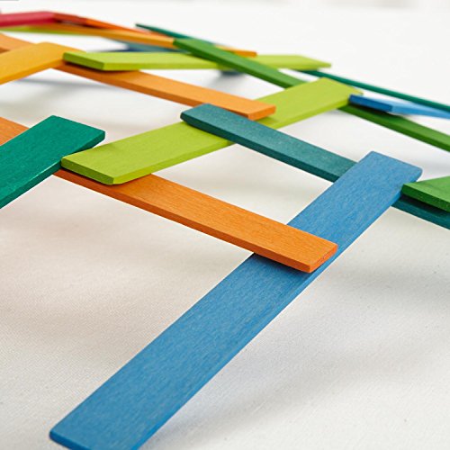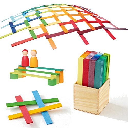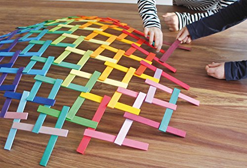 スティックを重ねていくと、ドーム状になります。珍しいスティックのパーツを、他の積木と合わせて遊べば、作品の幅が広がります。