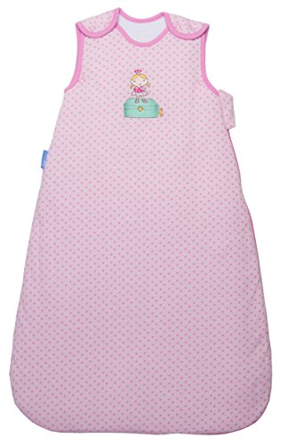 2.5 tog Ideal forall year round weather 16-20?C (61-68?F);Shoulder poppers & Side Zip on both sizes;Machine washable and can be tumble dried on low heat;Available in sizes 6-18 months & 18-36 months;100% woven cotton jersey lining