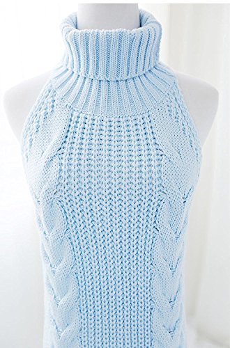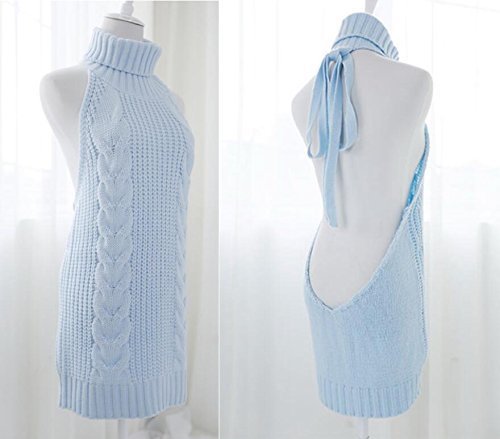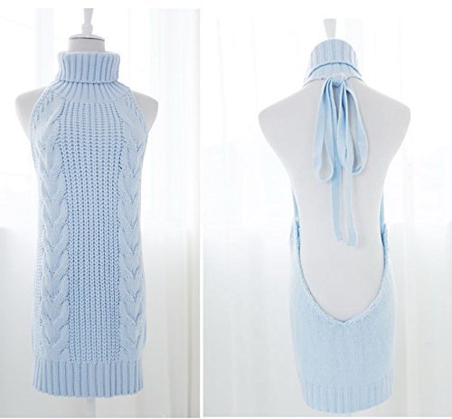 Grope 童貞を殺すセーター 肌見せ レディース カットソー ワンピース タートルネック バックレス 編み物 ニット(blue)