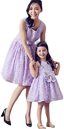 (ハビー)habille【ベビー】 親子でお揃い◎ ペアルック ドレス およばれ ドレス ワンピース フラワーデザイン フレア 結婚式 発表会 ウェディング ブライダル 【オリジナルノベルティ付】(130/キッズパープル)