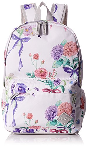 爽やかでロマンテックなオリジナルロングリボンフラワープリントディパック。軽くて汚れにくいポリエステル素材で、チェストベルト付き。