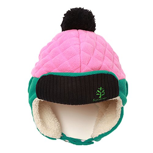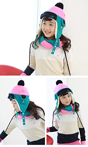 刺繍入り耳あて付き子供帽子 ベビー帽子 キッズ帽子 ニット帽子 ジュニア帽子 ヘアバンド ニット帽 通学 通園 (Lサイズ 8-15歳適応, ピンク)