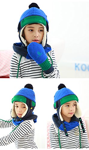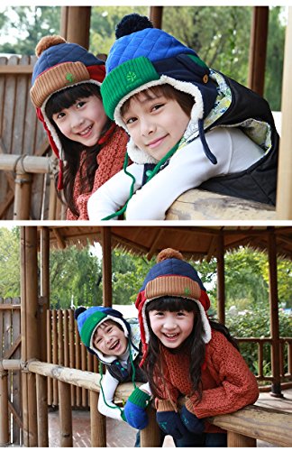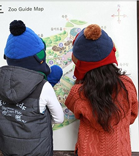 刺繍入り耳あて付き子供帽子 ベビー帽子 キッズ帽子 ニット帽子 ジュニア帽子 ヘアバンド ニット帽 通学 通園 (Mサイズ 4-8歳適応, ブルー)