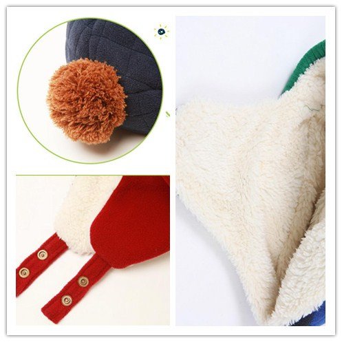 - 両側に耳当てがついたとっても温かな仕上がりとなっています。あご紐があるから、抱っこしても、走っても帽子が落ちないので安心。