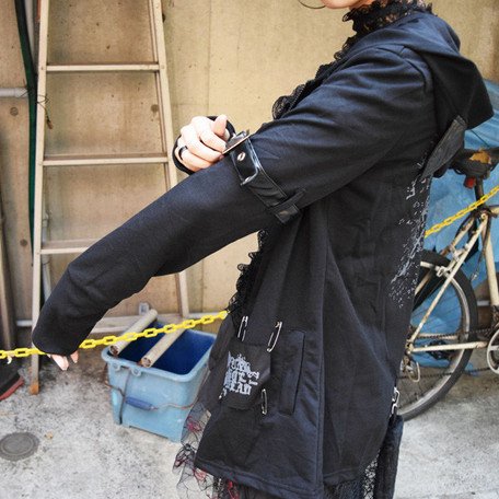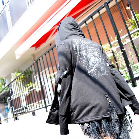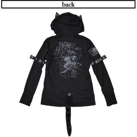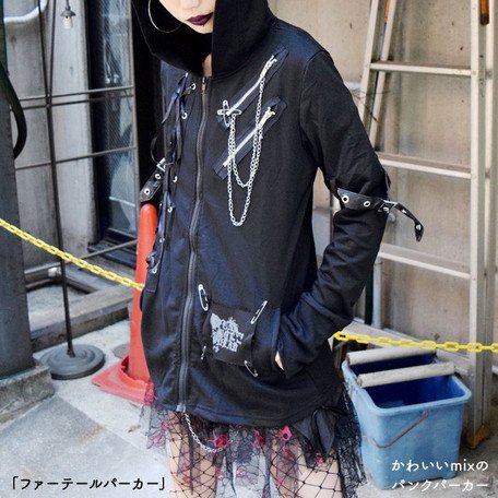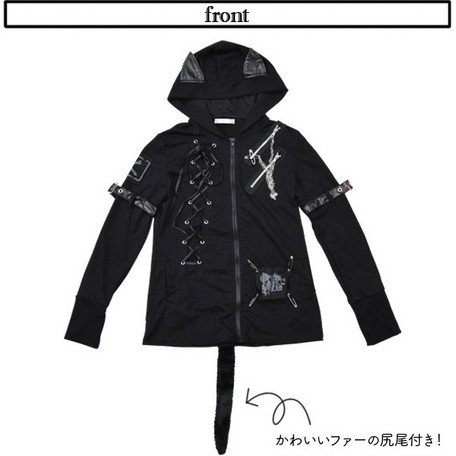 (パーカー)ファーテールパーカー 黒 パンク ロック V系 猫耳 バンギャ 原宿系 ロング丈 ACDC